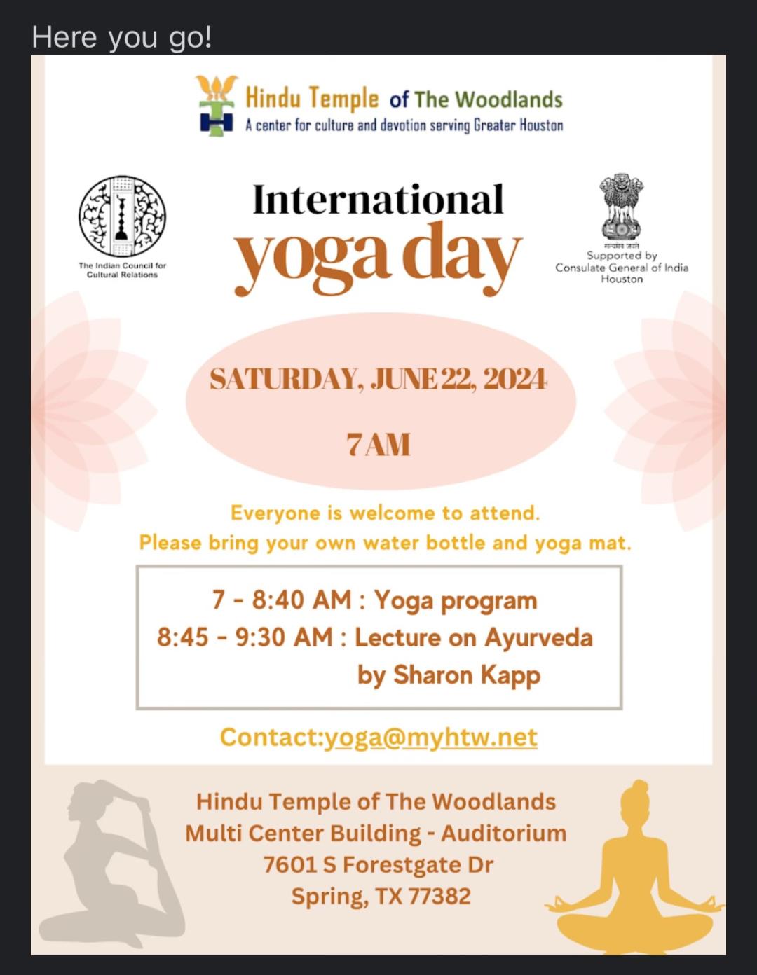 Join the Consulate General of India, Houston in a celebration of Yoga