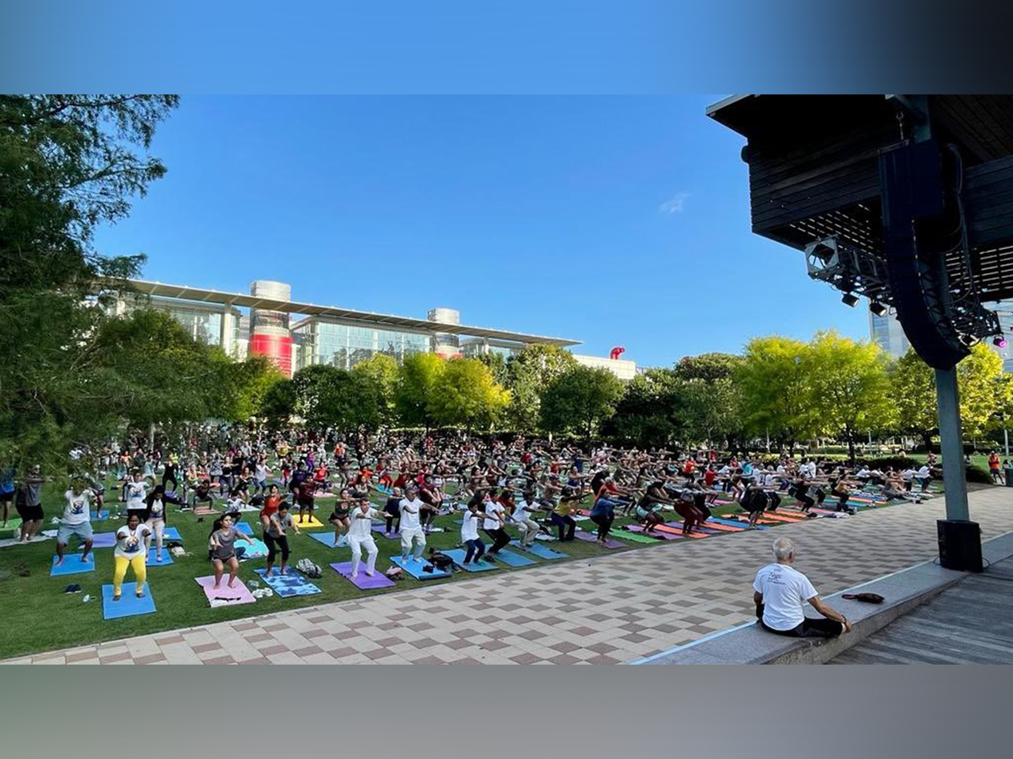 Celebration of the International Day of Yoga at the Discovery Green Park, Houston on June 21,2022